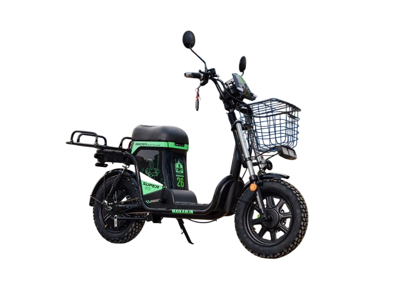 Комплектация: ✔ Зарядное устройство в комплекте ✔ Железо-фосфатный утеплённый аккумулятор (LiFеРО4) – безопасный и долговечный ✔ Большой цветной дисплей – удобная навигация и контроль параметров ✔ Сигнализация – защита от угона ✔ Яркая фара, стоп-сигнал и габариты – безопасность на дороге ✔ Курьерский багажник – идеально для работы и поездок